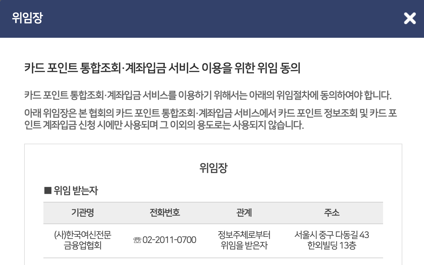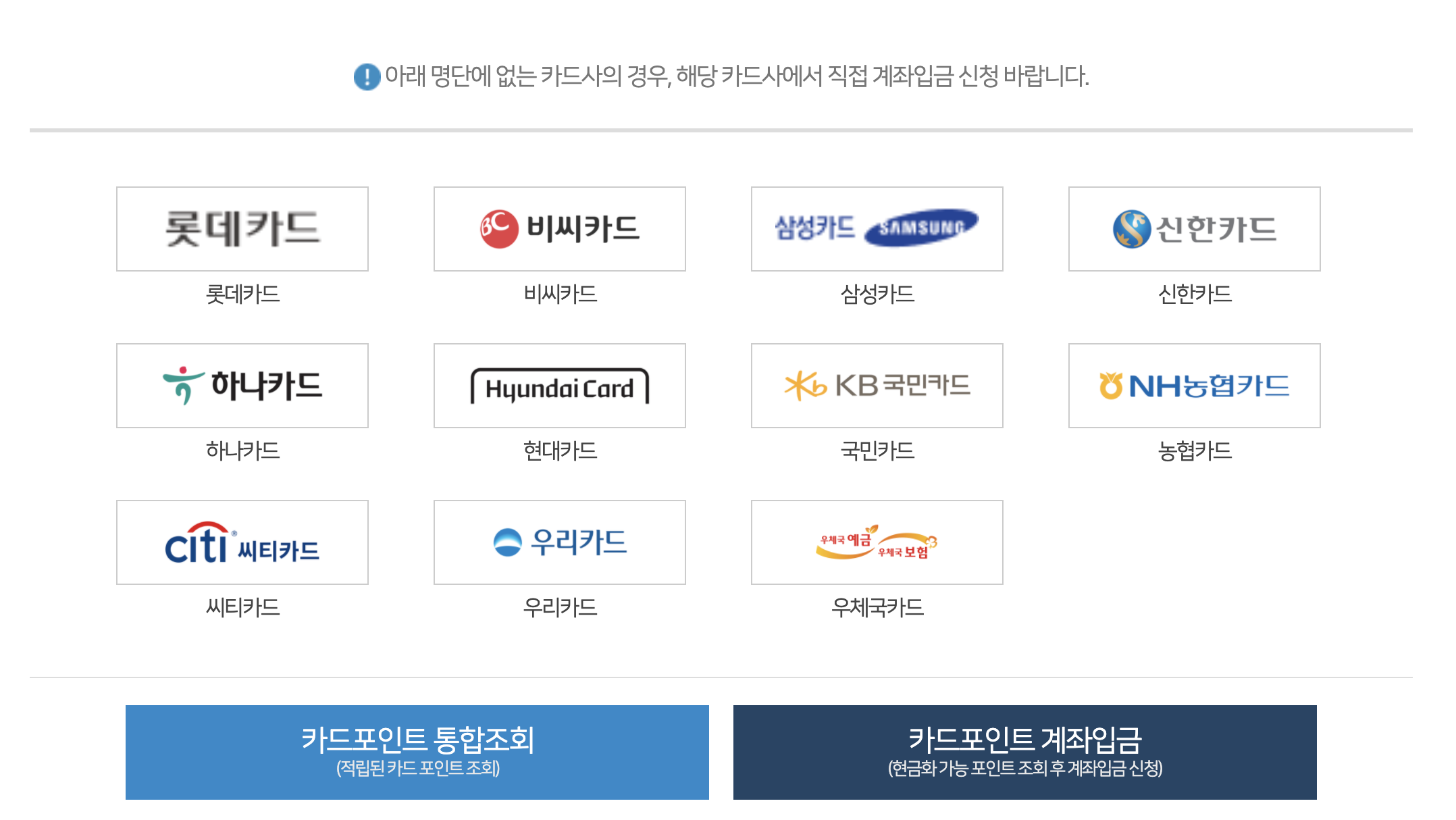 비로소 카드포인트 통합조회나 계좌입금을 할 수 있습니다.