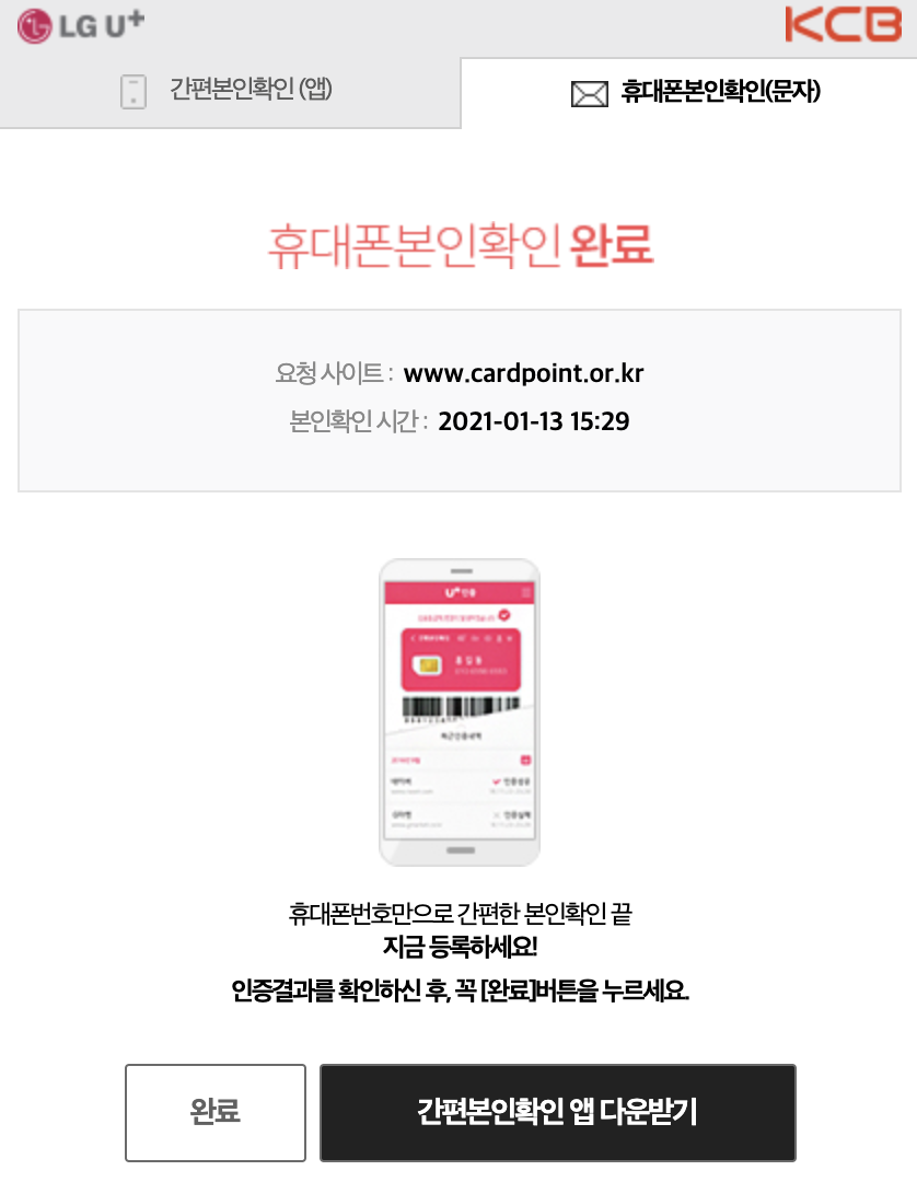 앗 여기서 또 함정 조심..."간편본인확인 앱 다운받기"가 "완료"의 세배 크기는 되는 느낌....
