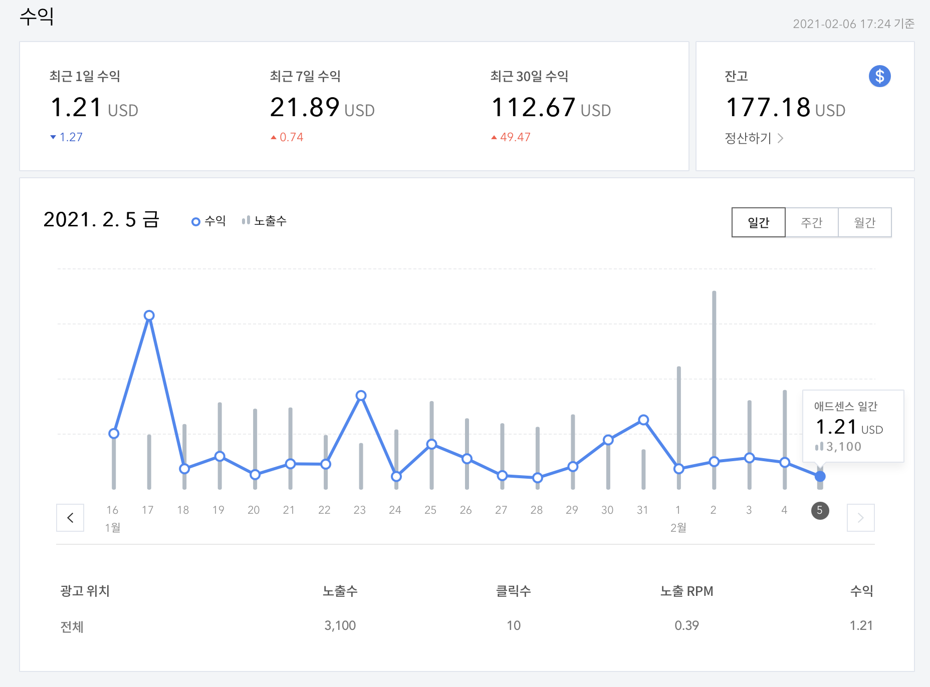 이제 애드센스 분석을 쉽게 확인할 수 있네요 ㅎㅎ