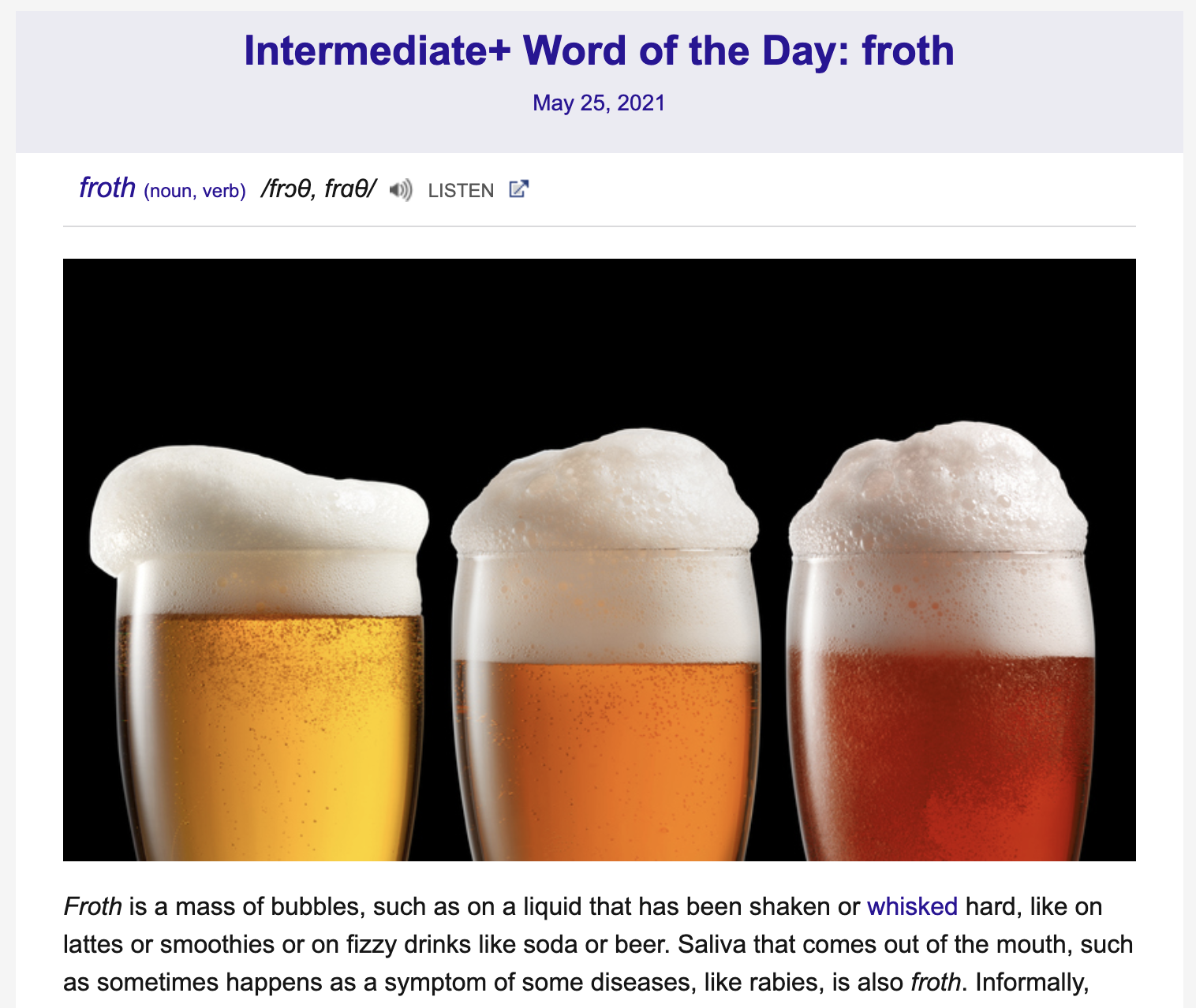 Intermediate+ Word of the Day: froth – WordReference Word of the Day