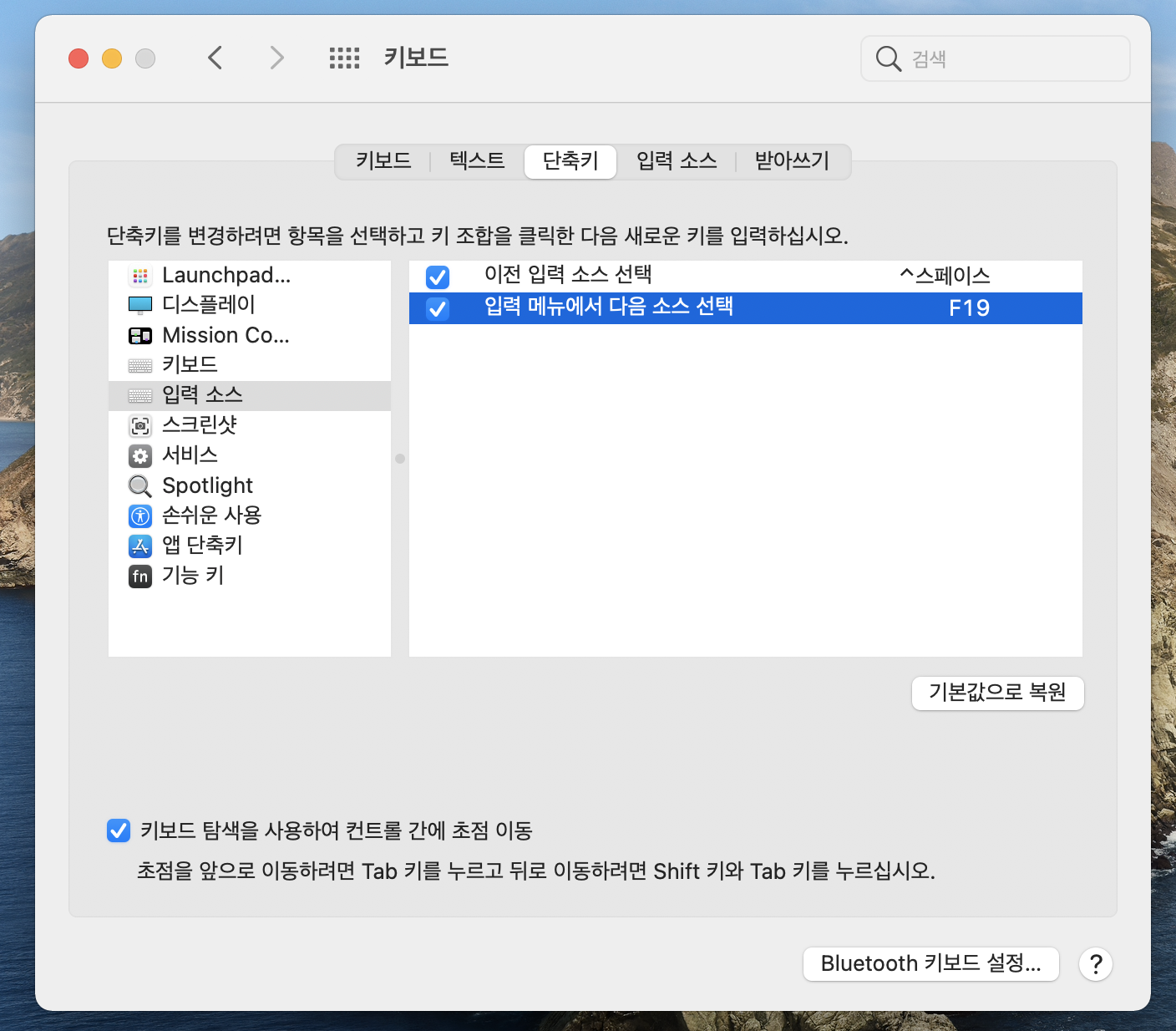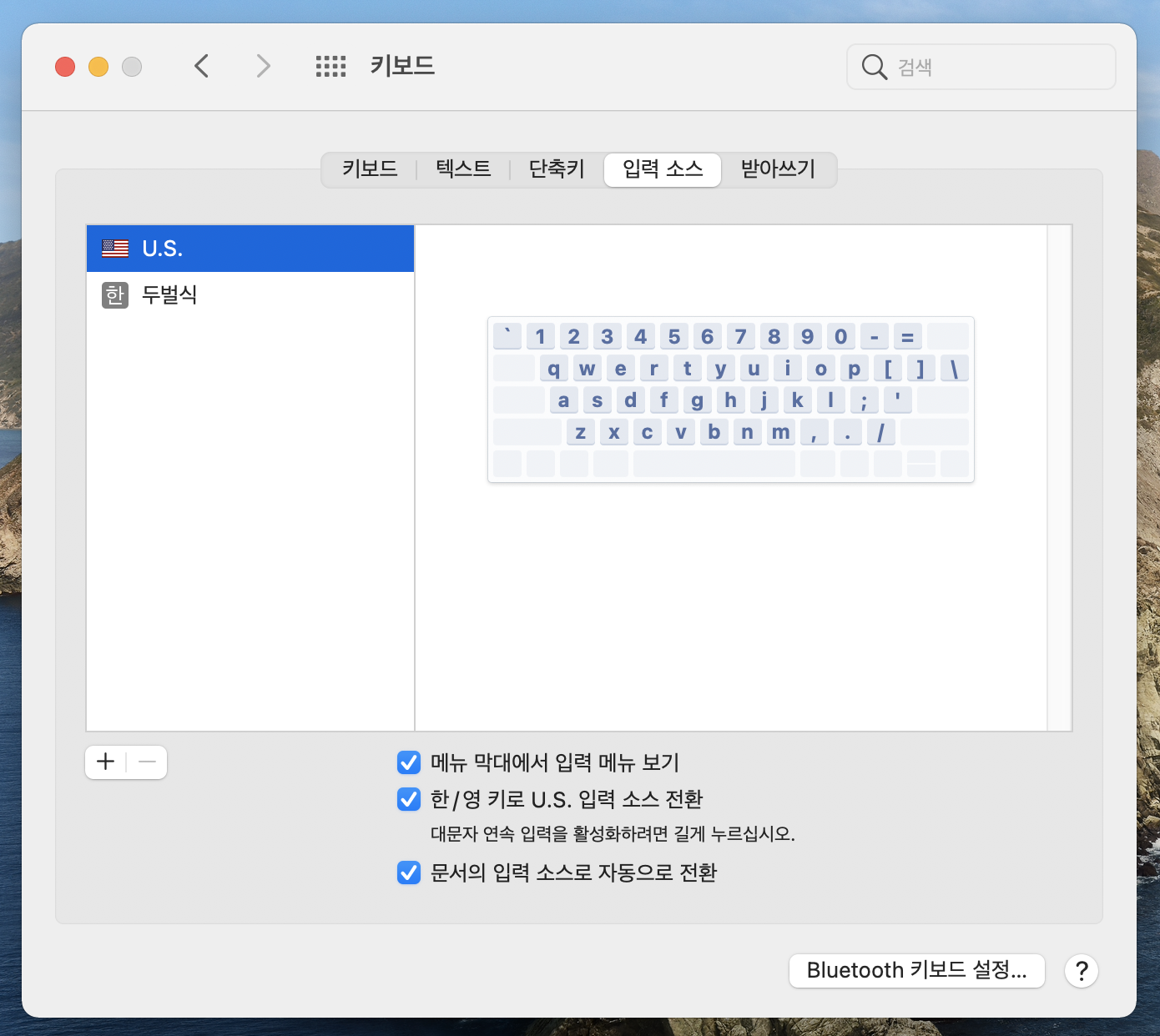 [한/영 키로 U.S. 입력소스 전환] 이걸 끄고 그냥 Control + Space로 전환해도 되는데