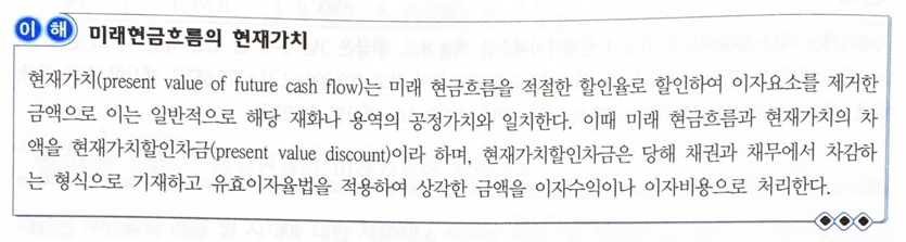 현재가치와 미래현금흐름의 차이는 만기까지 기간에 걸쳐 이자수익(비용)으로 인식한다.
