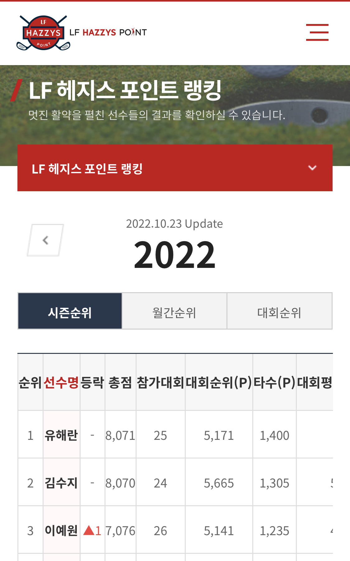 신인 선수 중 KLPGA 신인상 포인트 1위, LF 헤지스 포인트 시즌 순위 3위를 달리고 있는 선수는 000프로이다.