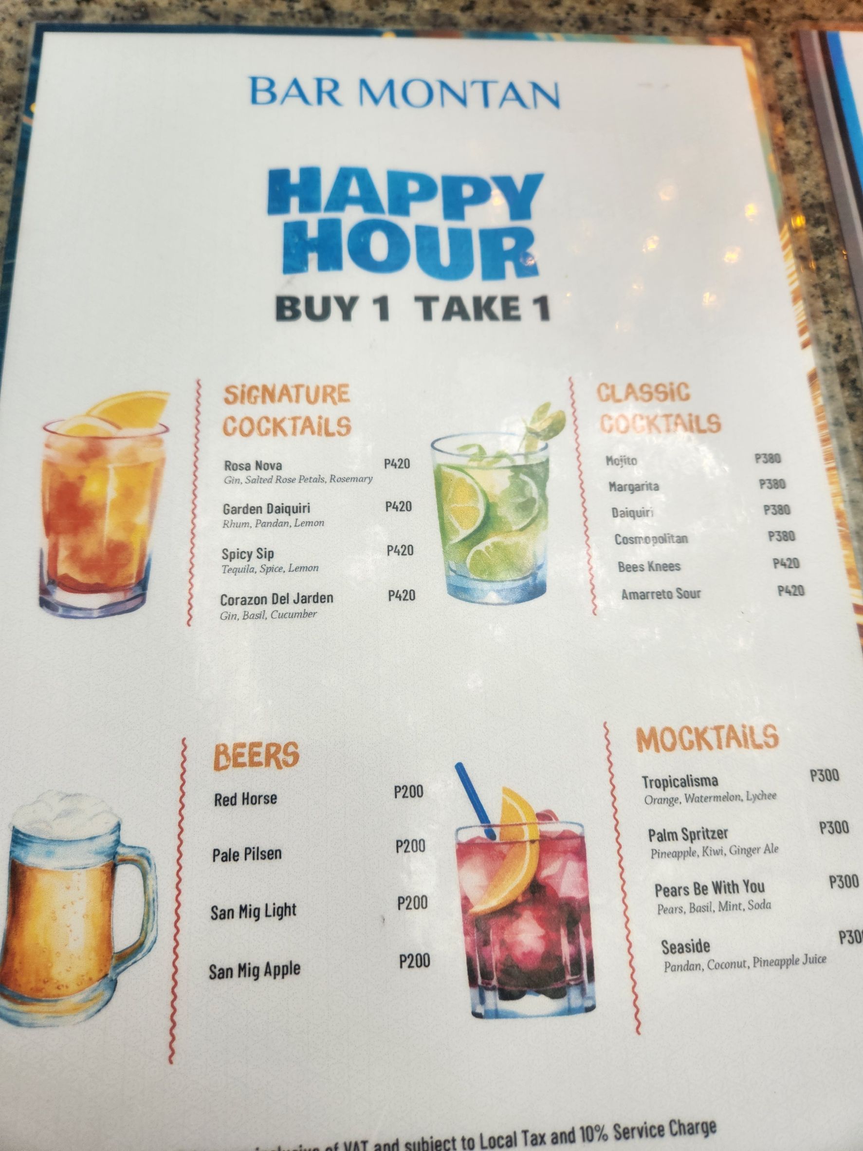 So I ordered, but upon closer inspection, I found that the Happy Hour menu prices are actually set 70-80 PHP higher than the regular menu! Quite a shock... While it’s still cheaper than buying two, it felt like a bit of a trick.