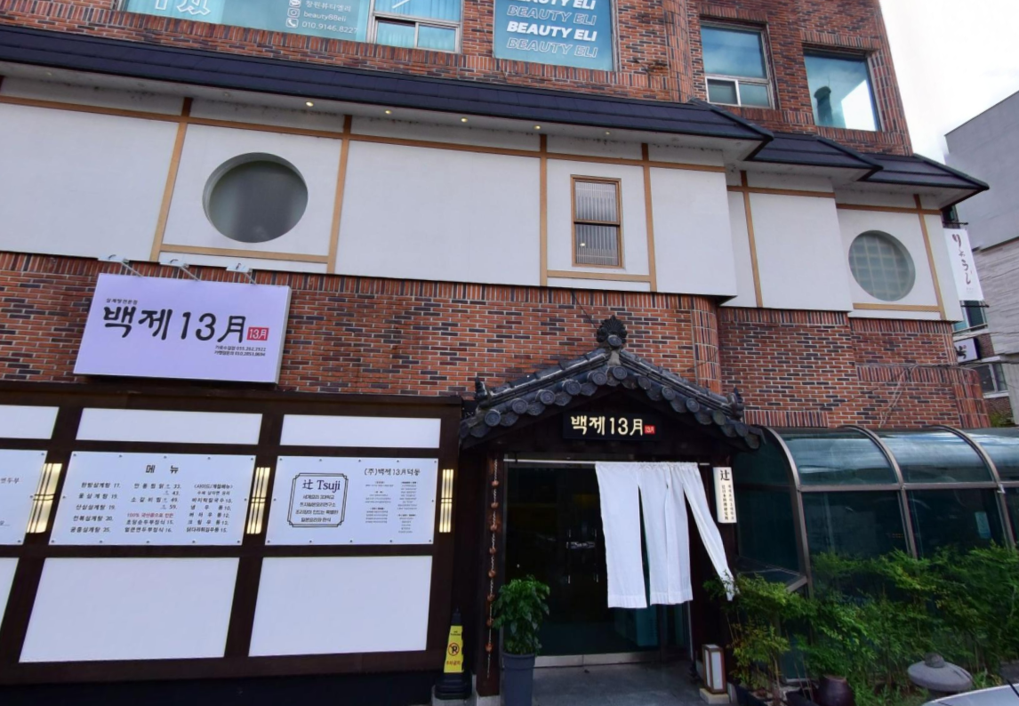 백제 13월 2층인데, 2층에 독특한 아웃테리어로 우선 찾고, 오른쪽에 보면 일어 히라가나로 작은 간판이 되어 있습니다.