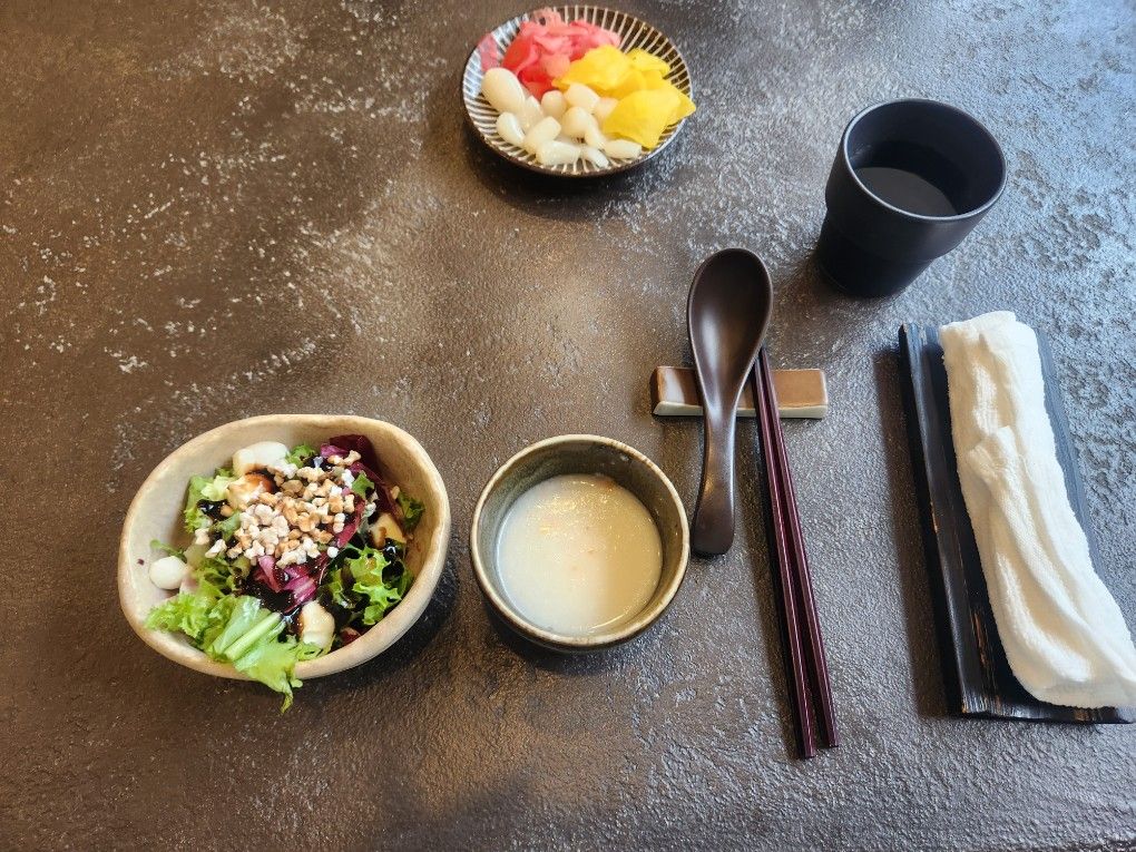 전채 - 전채로는 간단한 샐러드에 죽이 나옵니다. 귀엽고 깔끔해서 입맛을 돋구는데 제격입니다.