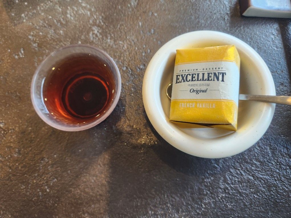 디저트 - 디저트는 엑셀런트가 나옵니다. French vanilla/ Original vanilla가 나오네요. 그리고 수정과도 귀엽게 나옵니다.