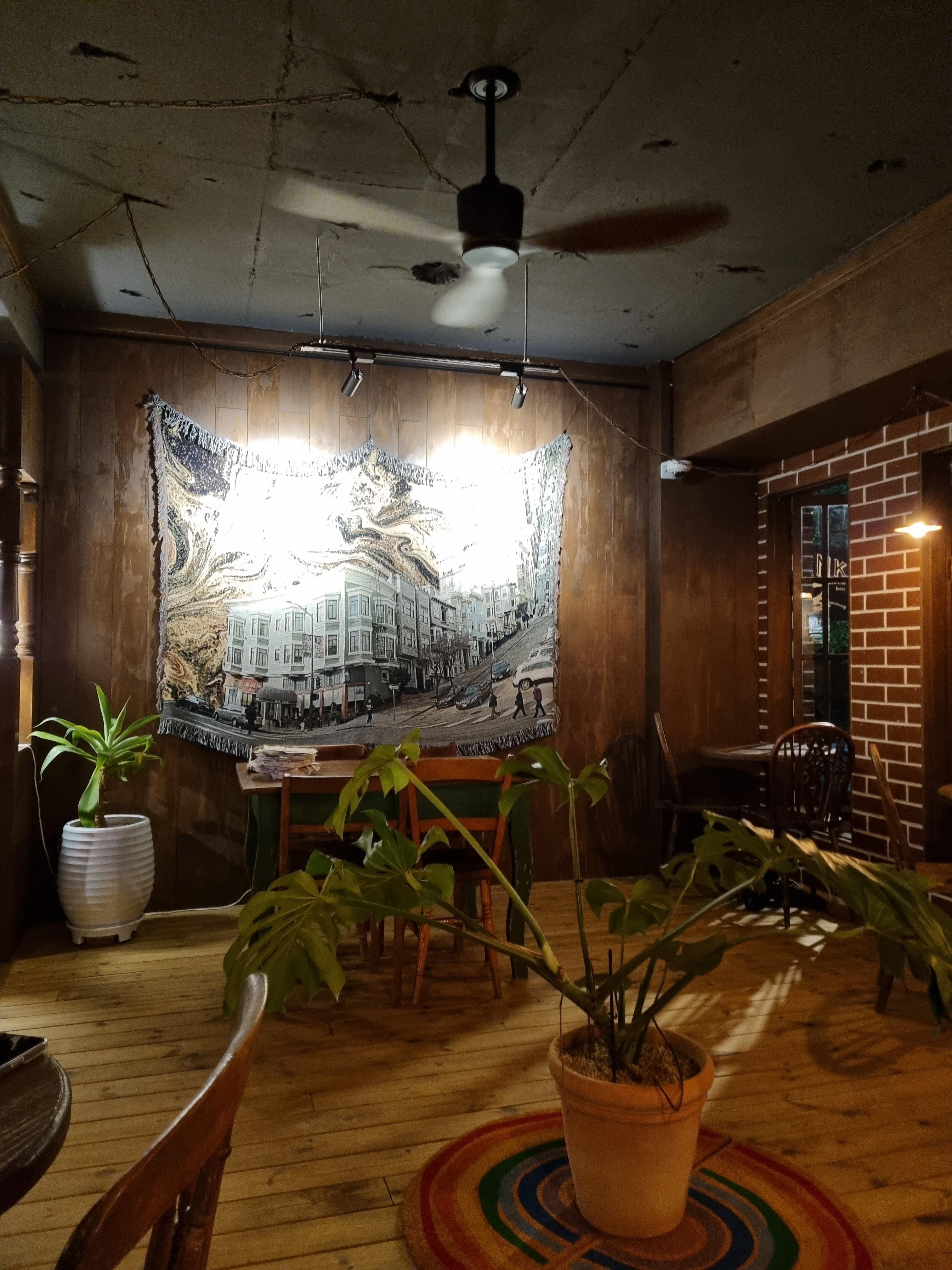 또 하나의 재미 요소는 음악 신청이 가능하다는 점! 자신만의 플레이리스트를 신청해 카페에서 틀어줄 수 있어, 마치 개인적인 공간에서 커피를 즐기는 기분이 듭니다. 나무 소재의 가구들과 곳곳에 배치된 소품들이 이 독특한 분위기를 한층 더 살려줘, 사진을 찍기에도 아주 좋은 곳입니다.
