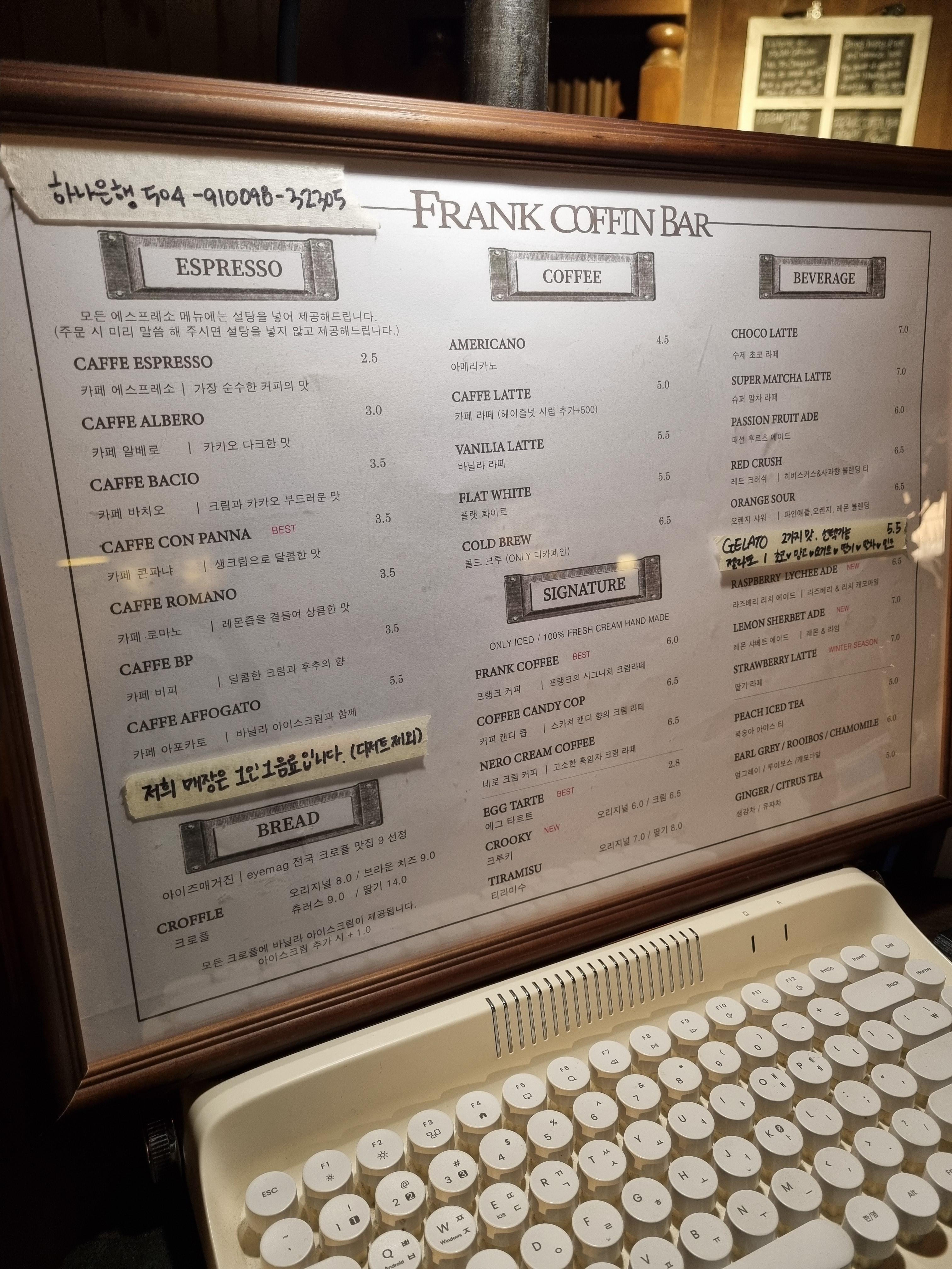 그리고 전부 프랭크커핀바의 로고가 새겨진 컵에 제공이 되니까 통일되어보이고 컨셉에 진심이구나 싶은 생각도 들고 만족했습니다.