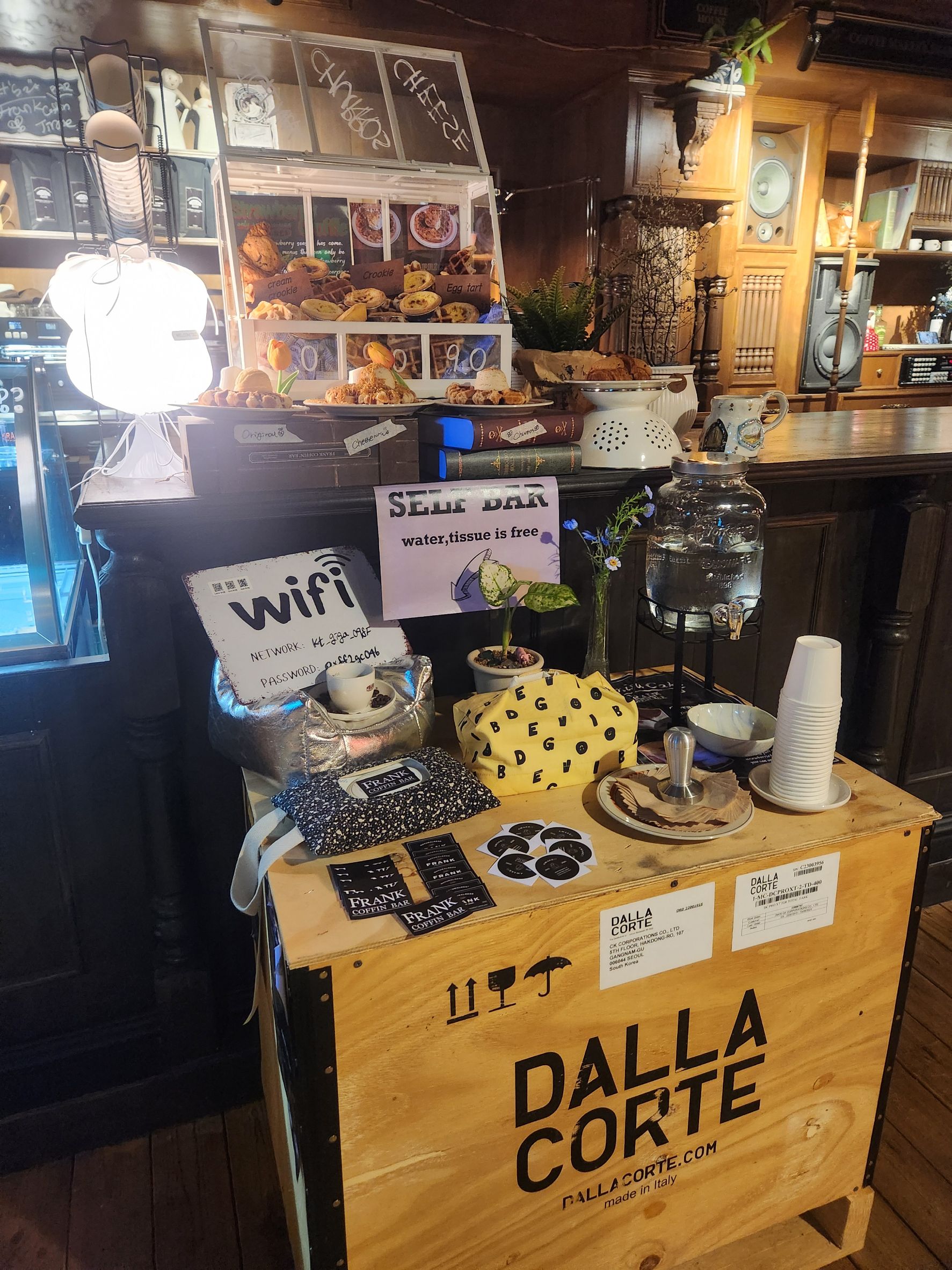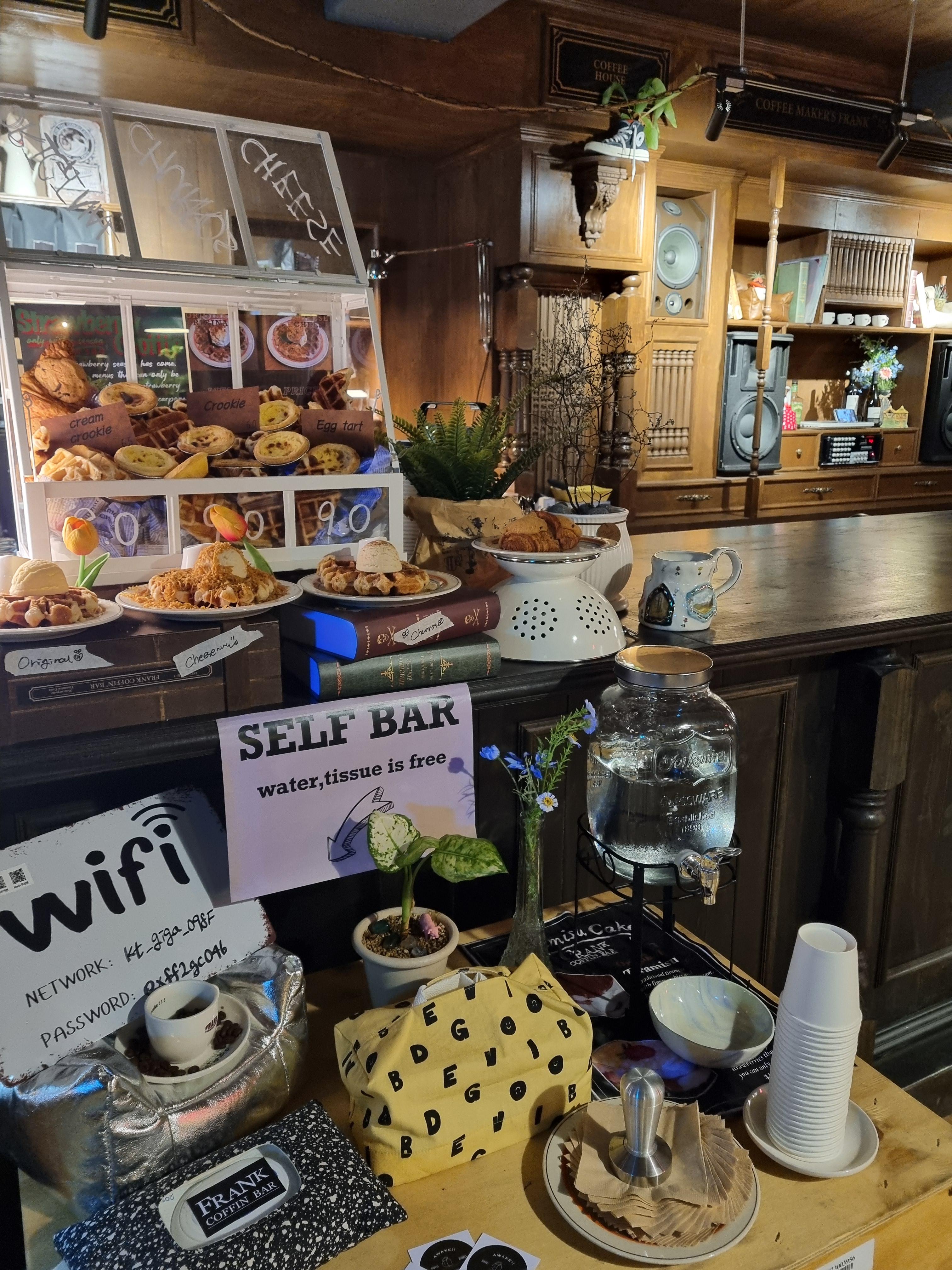 프랭크 커핀바의 가장 큰 매력 중 하나는 빈티지스러우면서도 독특한 인테리어입니다. 나무가 기본 컨셉으로, 카페 전체가 목재로 꾸며져 있어 따뜻하고 자연적인 느낌을 줍니다. 이곳에 들어서면 마치 전통적인 감성과 모던한 세련미가 조화를 이루는 듯한 분위기가 인상적이에요.