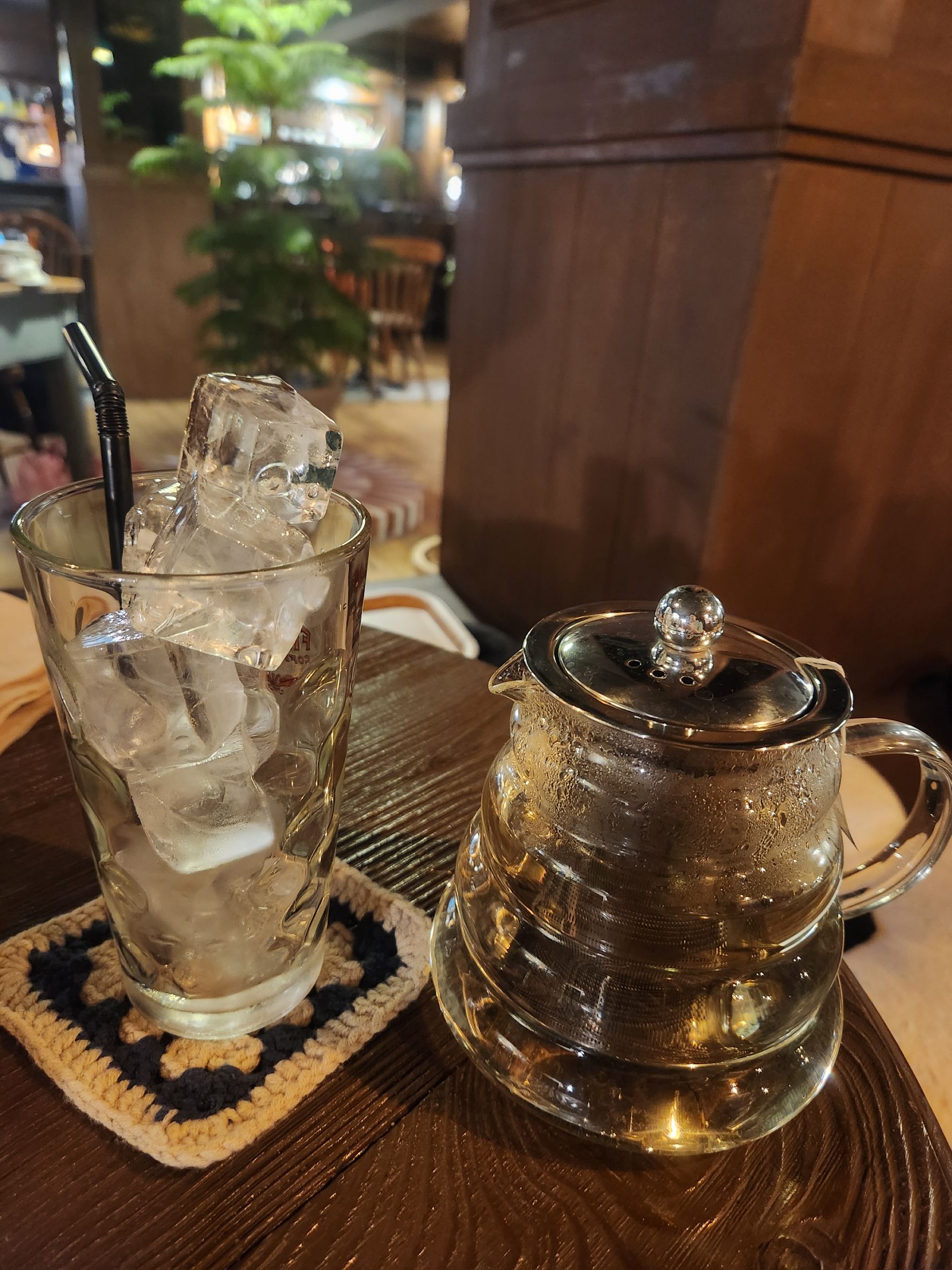 다만, 약간 아쉬운 점은 1인 1음료 규정이에요. 디저트를 주문할 때도 별도로 음료를 추가해야 하는 점이 조금 아쉽습니다. 크로플과 같은 디저트 메뉴를 음료와 동일하게 1인 메뉴로 포함시키면 더 좋을 것 같아요.