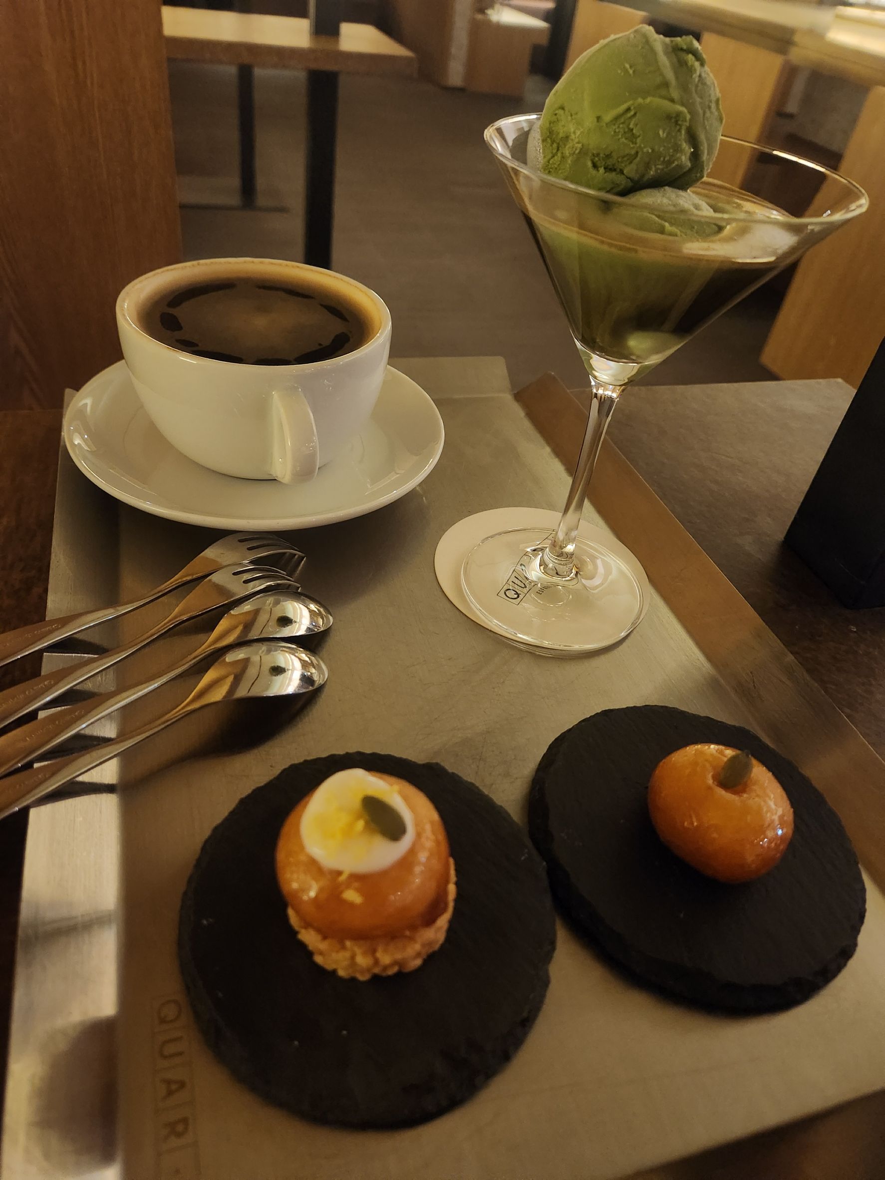 쿼크커피바의 메뉴는 심플하지만 독창적입니다. 커피와 다양한 음료 외에, 전통 디저트인 '개성주악'을 현대적으로 재해석하여 제공합니다. 주악의 크기가 작고, 가격대비 양이 적게 느껴질 수 있으나, 배부름보다는 가볍게 즐기는 디저트로는 제격입니다.
