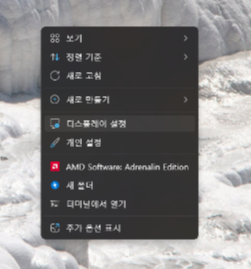 먼저, 바탕화면에서 마우스 오른쪽 버튼을 클릭합니다. 그러면 아래와 같은 메뉴가 나타납니다.