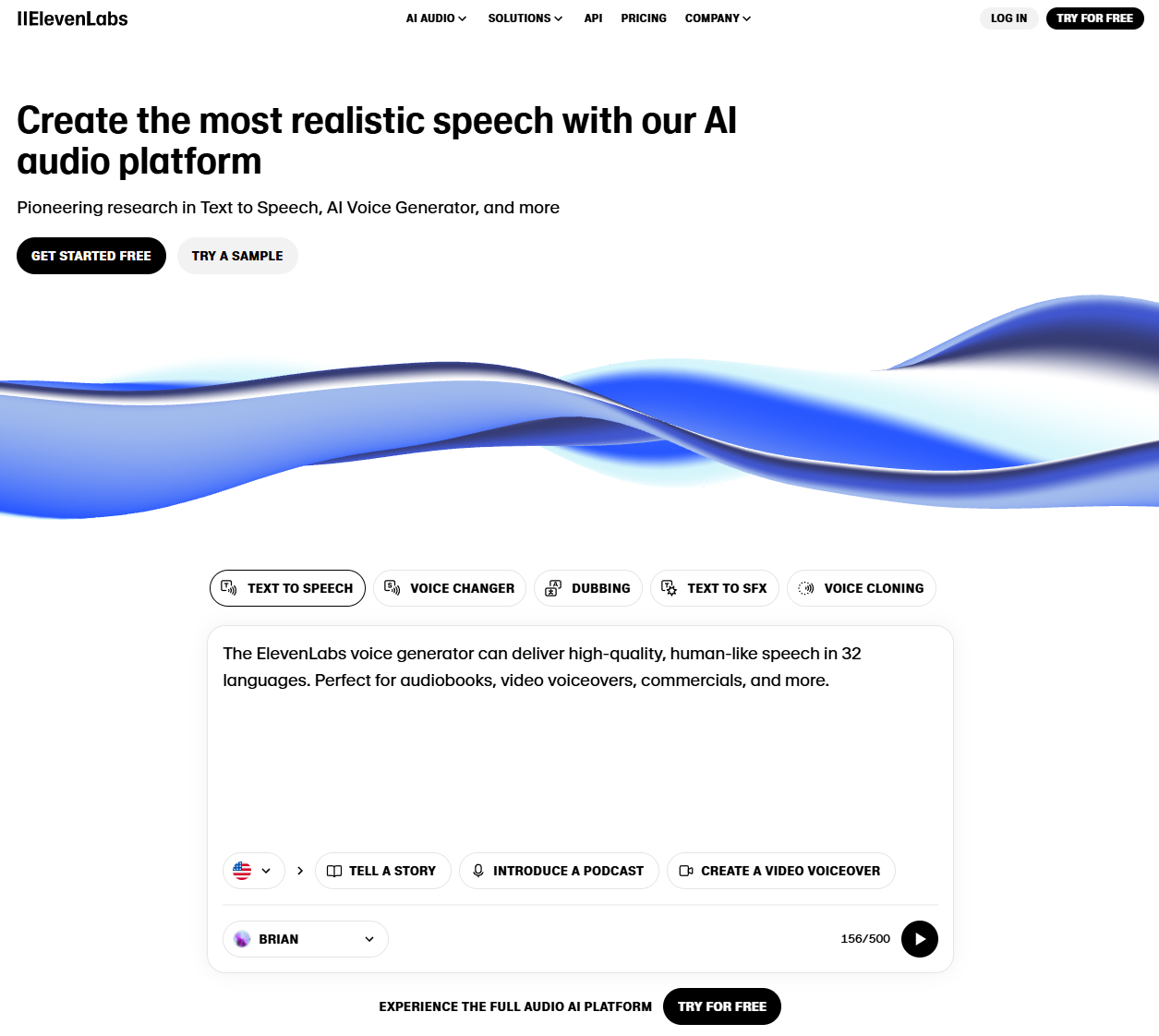 Create the most realistic speech with our AI audio in 1000s of voices and 32 languages. Pioneering research in Text to Speech and AI Voice Generation