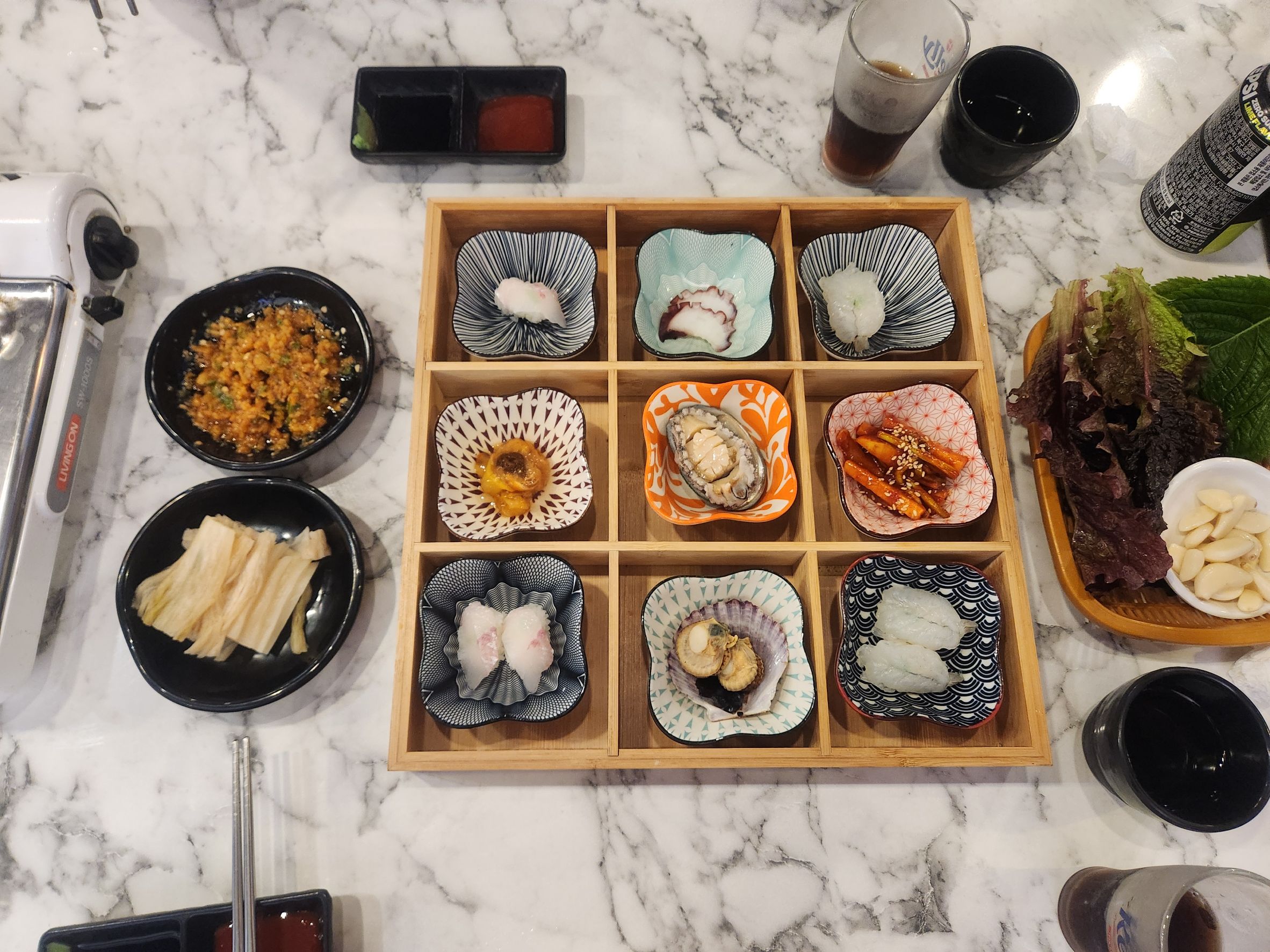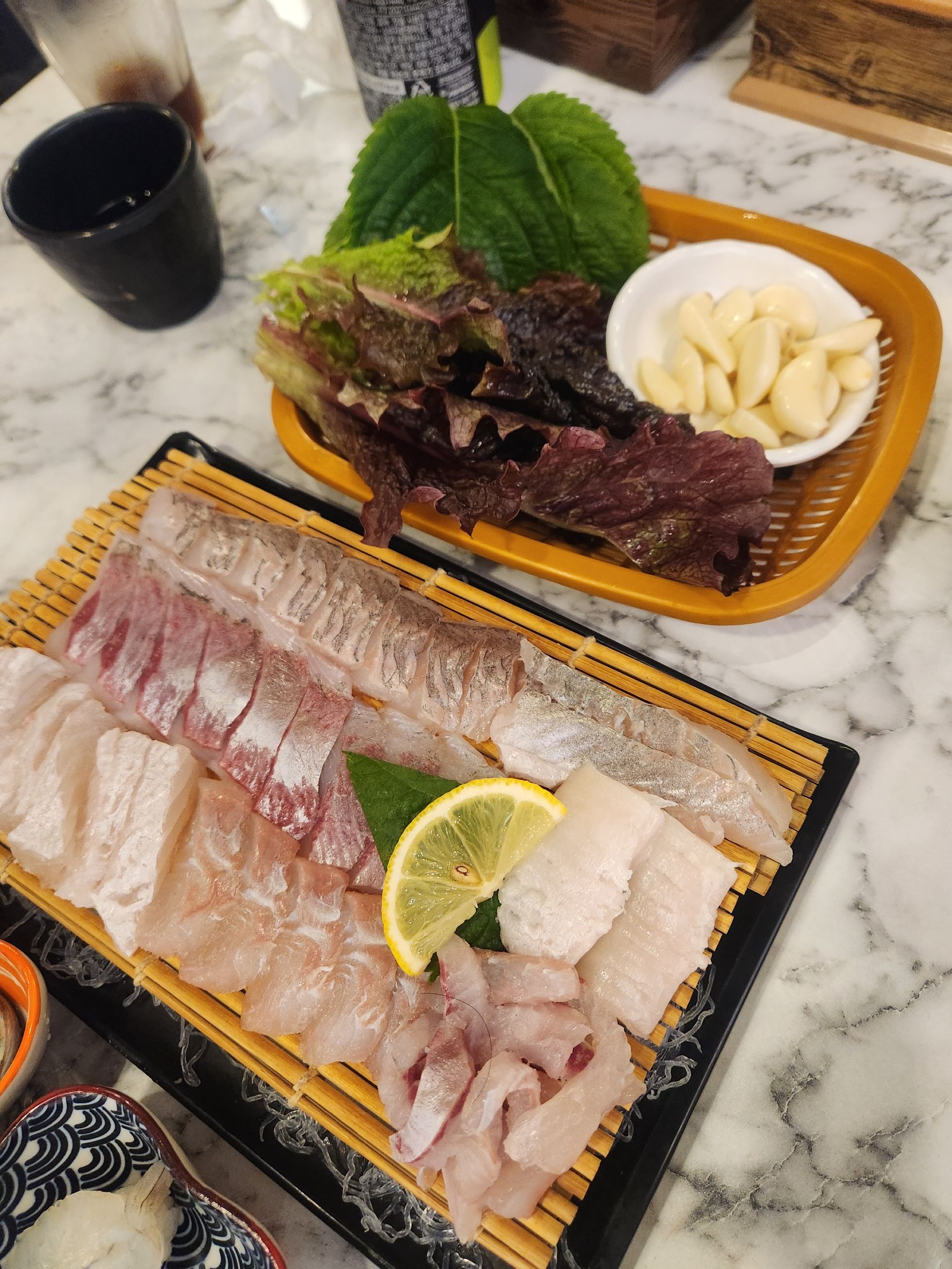 ✔ 회와 해산물의 완벽한 조화 – 한 자리에서 다 즐길 수 있음.