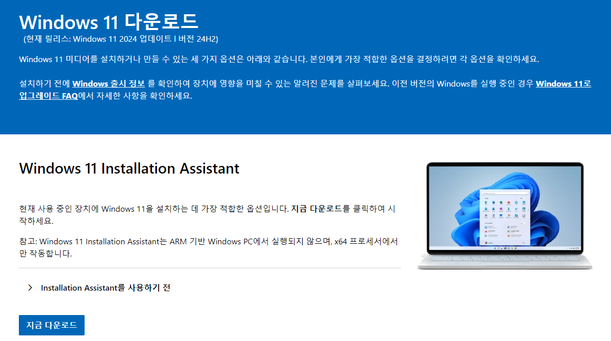 📌 2단계: Windows 11 설치 도우미로 업그레이드 진행