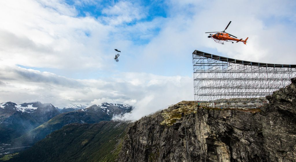 클라이맥스의 하이라이트인 오토바이 절벽 점프 신은 영화 개봉 전부터 “영화 역사상 가장 위험한 스턴트”로 큰 화제를 모았는데, 크루즈는 이 장면을 위해 수년간 준비하고 훈련했다고 합니다. 그는 모터크로스 바이크를 타고 최고 속도로 절벽 끝을 질주해 날아오른 뒤 곧바로 낙하산을 펴는 일련의 동작을 완벽히 해내야 했습니다. 이 죽음을 무릅쓴 도전을 촬영하기 위해 제작진은 노르웨이 산악지대 절벽 옆에 거대한 강철 구조물로 점프대(램프)를 지었고, 크루즈는 촬영 첫날부터 맨몸으로 그곳을 달려 뛰어내렸습니다.