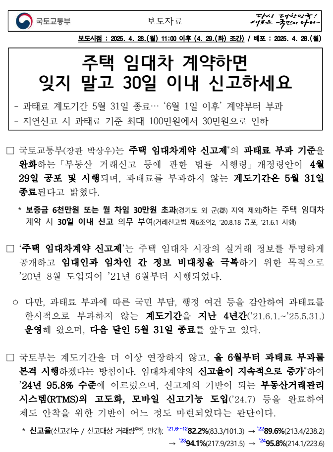 → 아니요! 5월 31일까지 계약한 건 과태료 면제입니다.