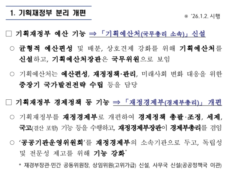 1. 기획재정부 개편 – 예산과 경제정책의 분리