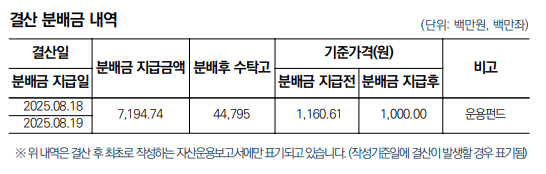 25년 8월 18일에 23억 배당(분배) 띡하고 끝. 근데 배당을 하고 나면 과표 기준가가 다시 1,000원으로 바뀌는데 왜 그렇지?