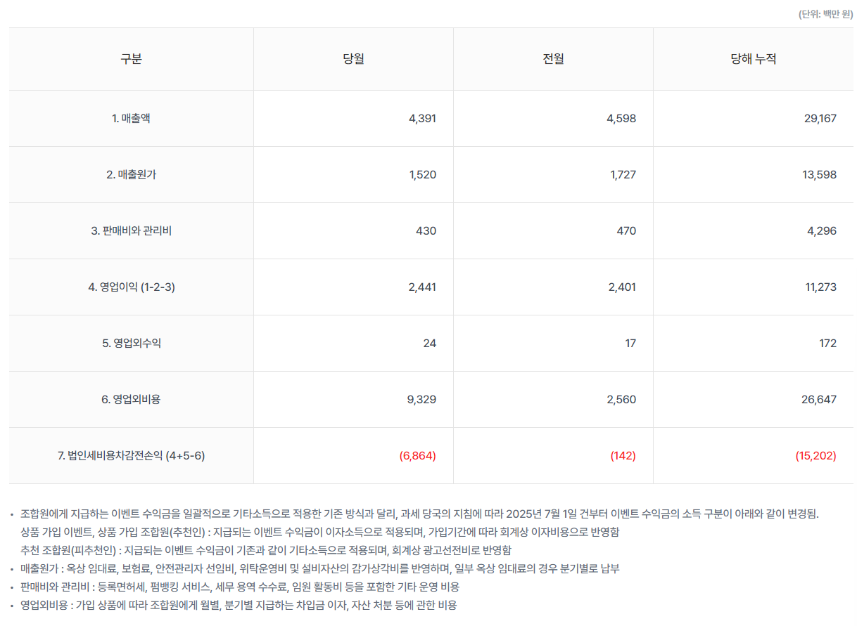 결국 계속해서 적자가 나는 구조이다.