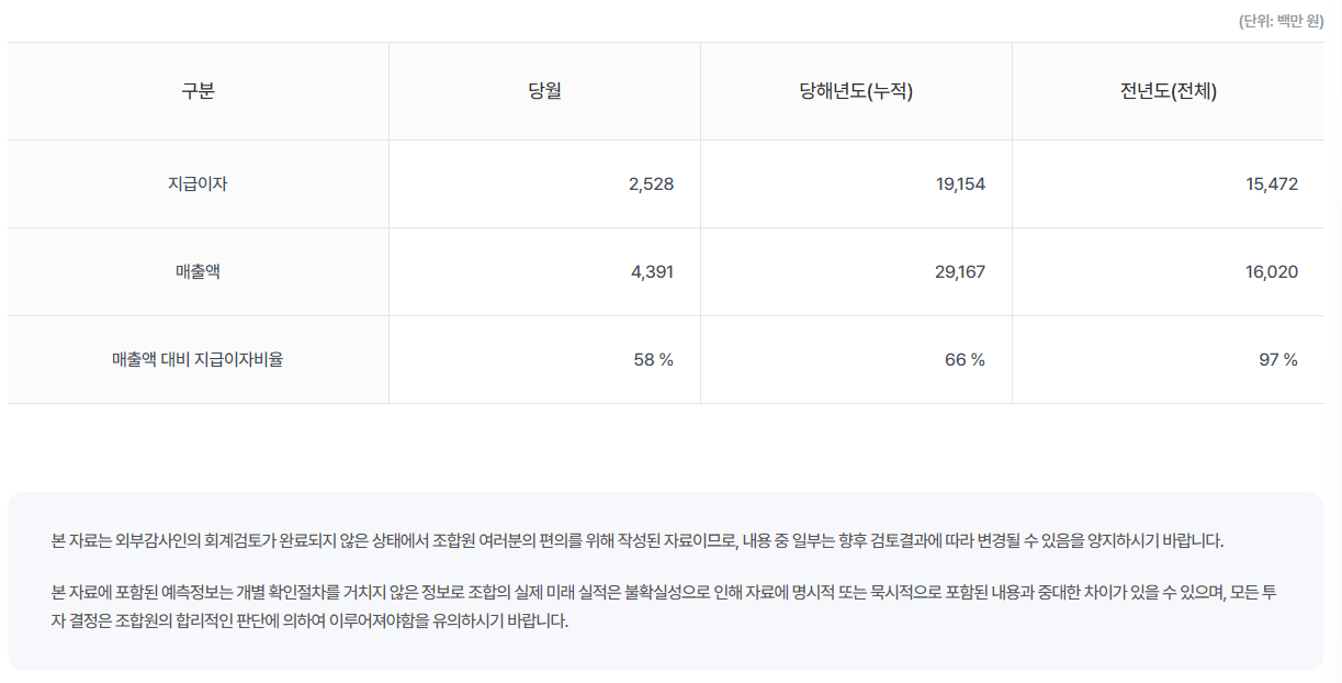 매출 대비 지급이자 비율이 전년도는 97%나 되고, 2025년도 66%나 된다.
