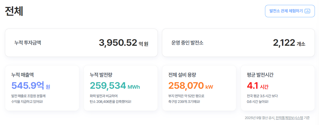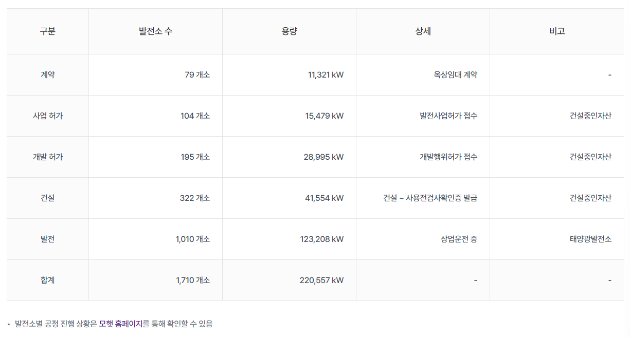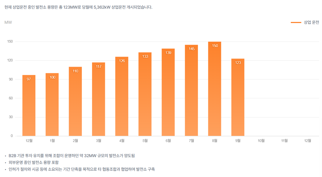2025년 9월 123MW의 태양광 발전설비를 가지고, 9월에 5,362kW의 상업운전을 했다.