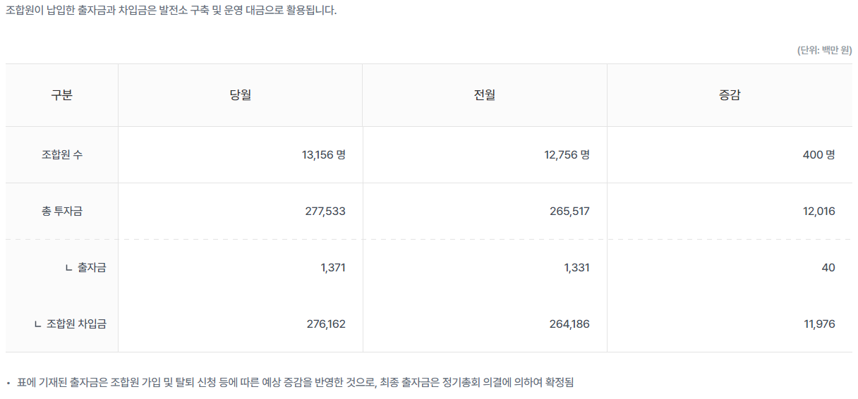 조합원들의 돈을 모아서 태양광에너지 시장에 투자한다.