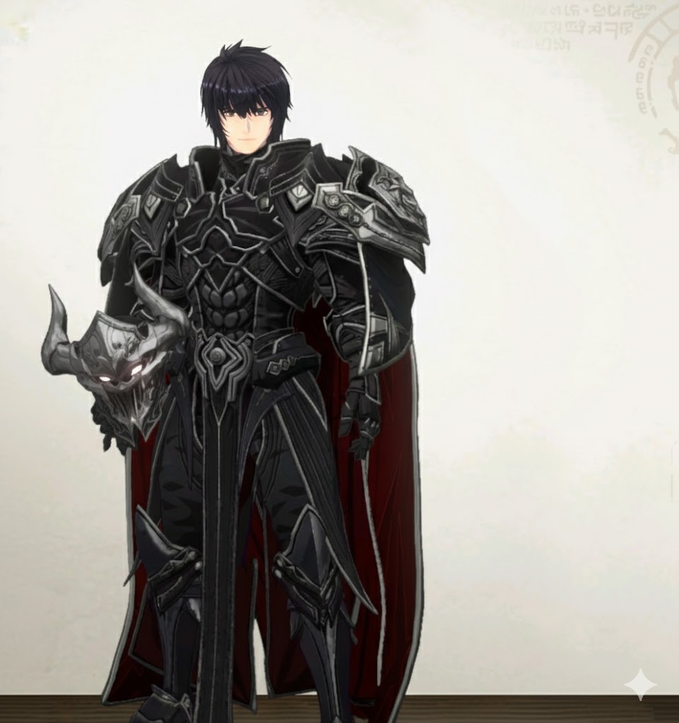 왼쪽 전신 사진이 오른쪽 인물이 갑옷을 다 입었을때 사진인데, 오른쪽 사진이 평소 사진이고 얼굴이야.