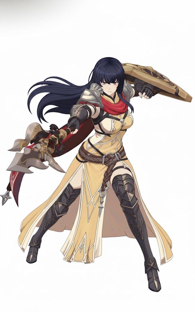 1. 투구가 전투로 인해 부서져서 얼굴의 반이 드러난 상황으로 왼쪽 사진에 오른쪽 얼굴을 입혀줘