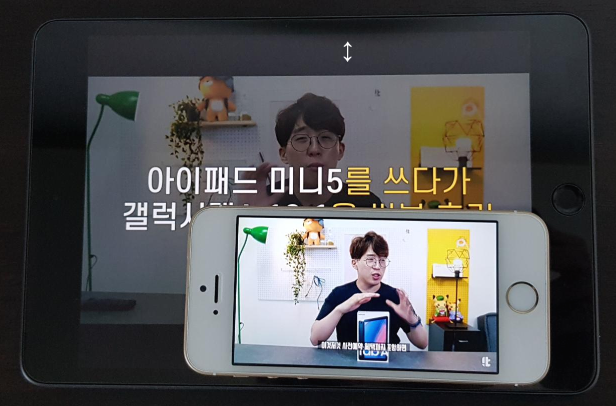 아이패드 미니 5 와 아이폰 SE 유튜브 재생화면 비교.