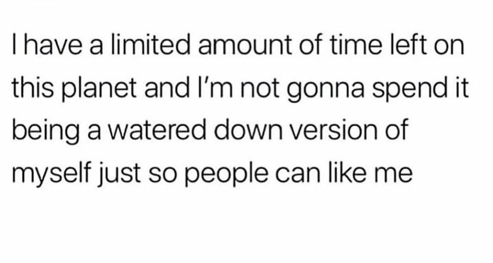 지금 이 행성에서 남은 시간은 제한되어 있고, 난 다른이가 나를 좋아하게 하기 위해서 나 자신을 낮추는데 시간을 보내지 않겠다.