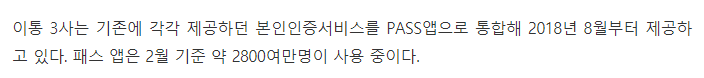 그틈을 파고들어 이동통신 3사가 PASS(패스) 앱을 만들어서 배고하고 있는데요
