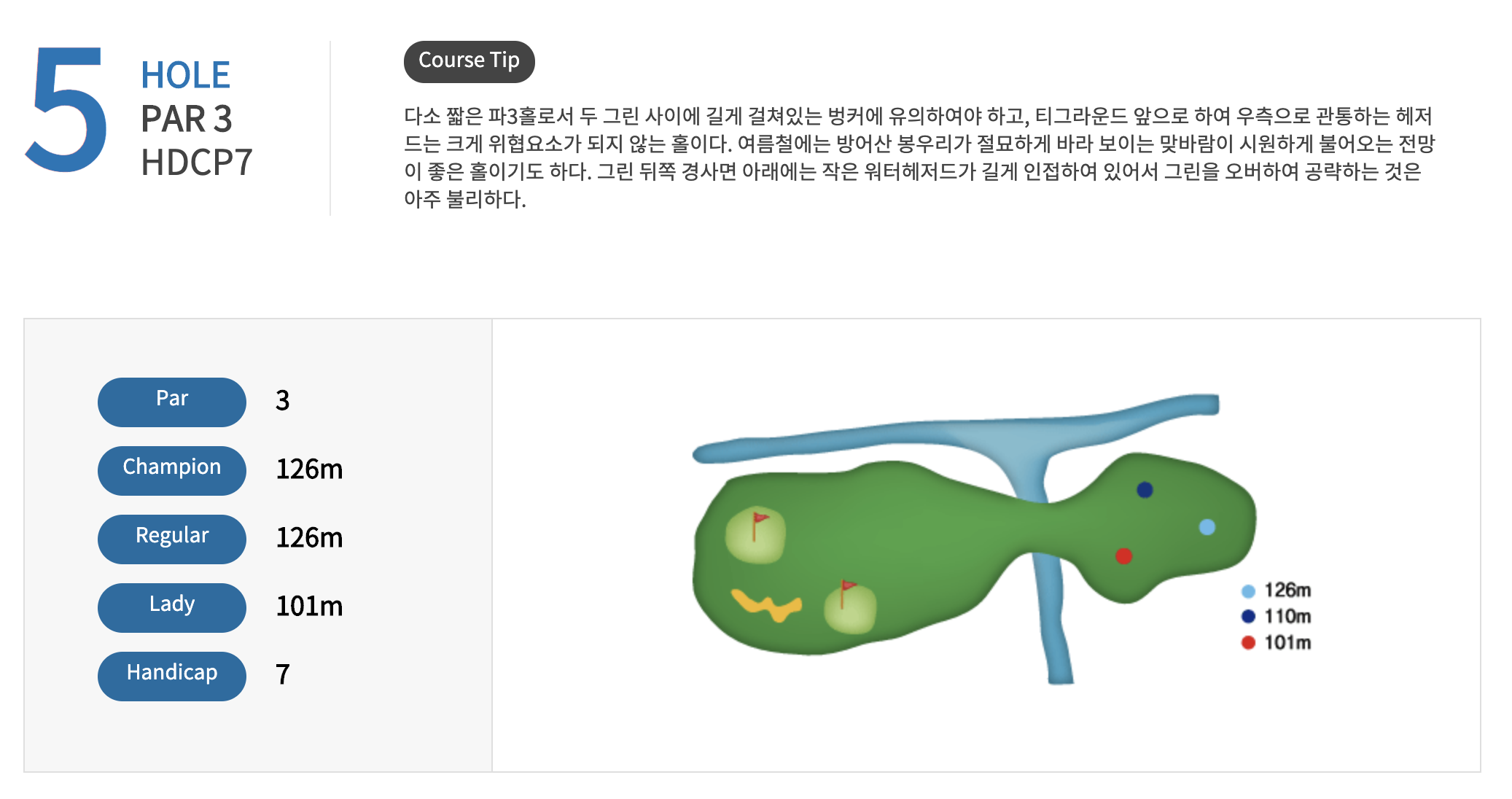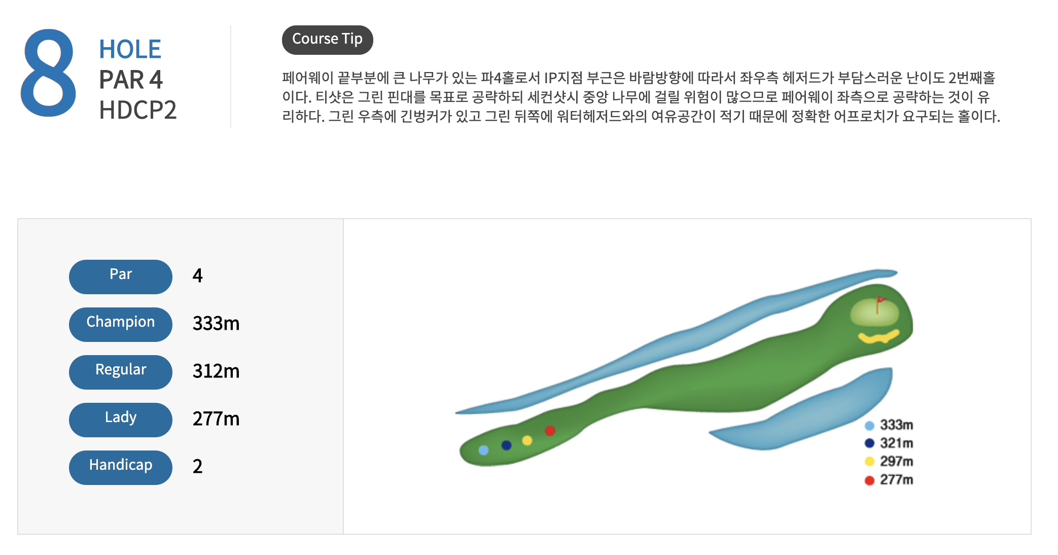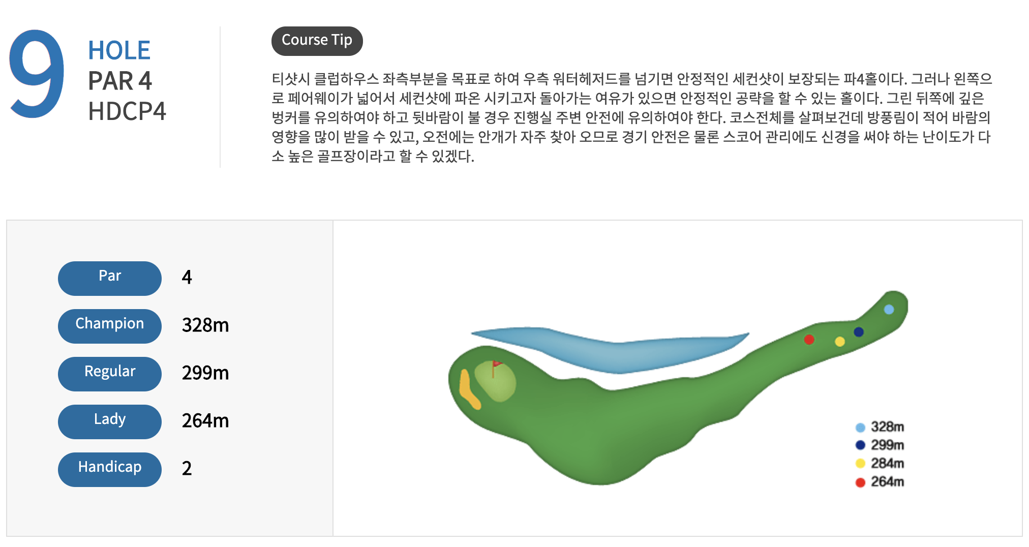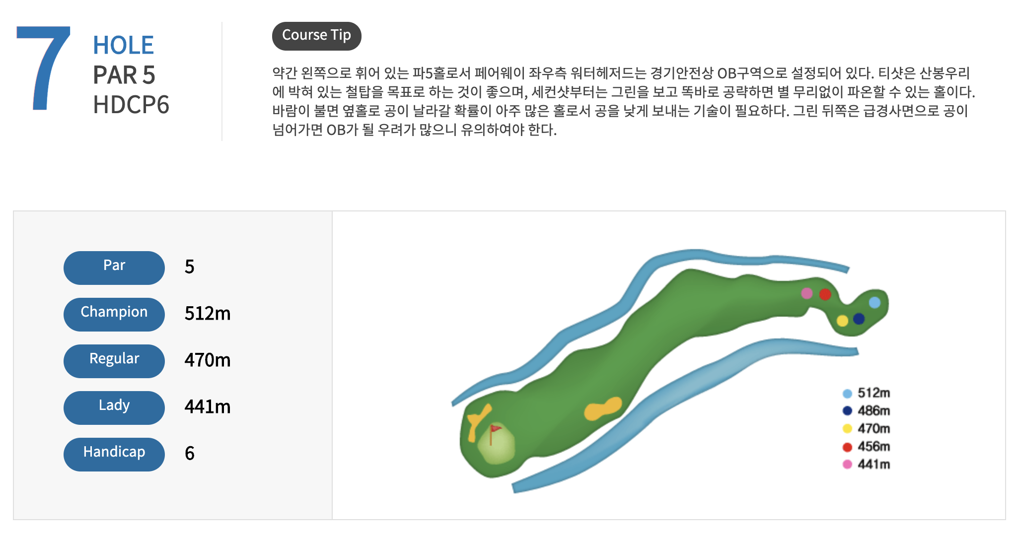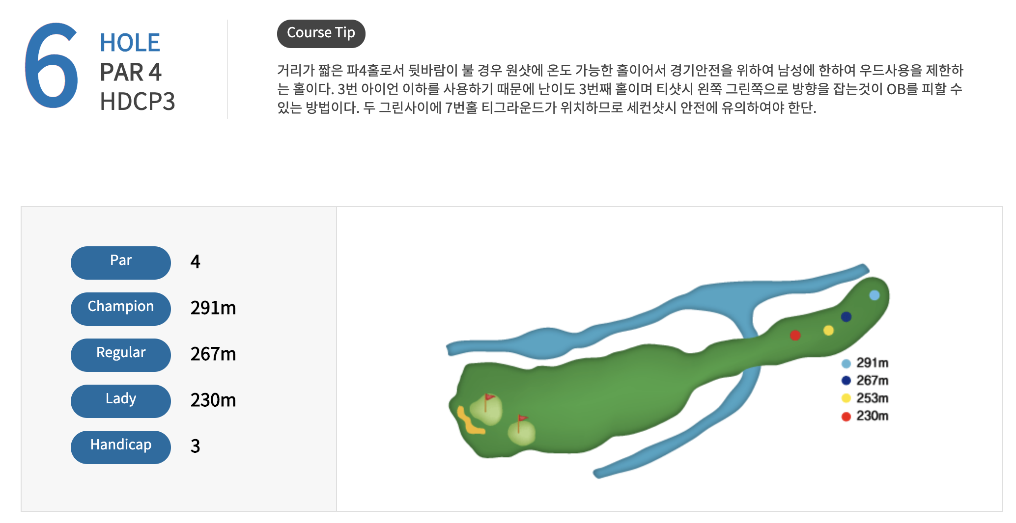 남자는 3번이하 아이언으로 진행해야하는 코스 입니다.
