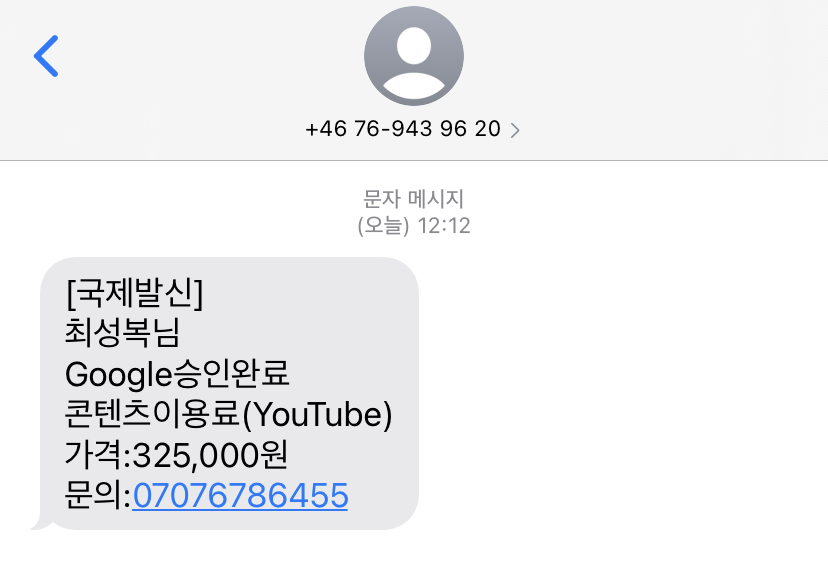 최근에는 구글, 유튜브 문자로도 사기를 치려하네요