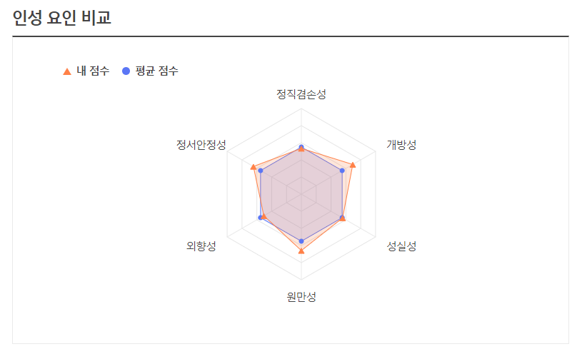 정직겸손성에서 점수가 낮은 것에서 충격... ㅠㅠ