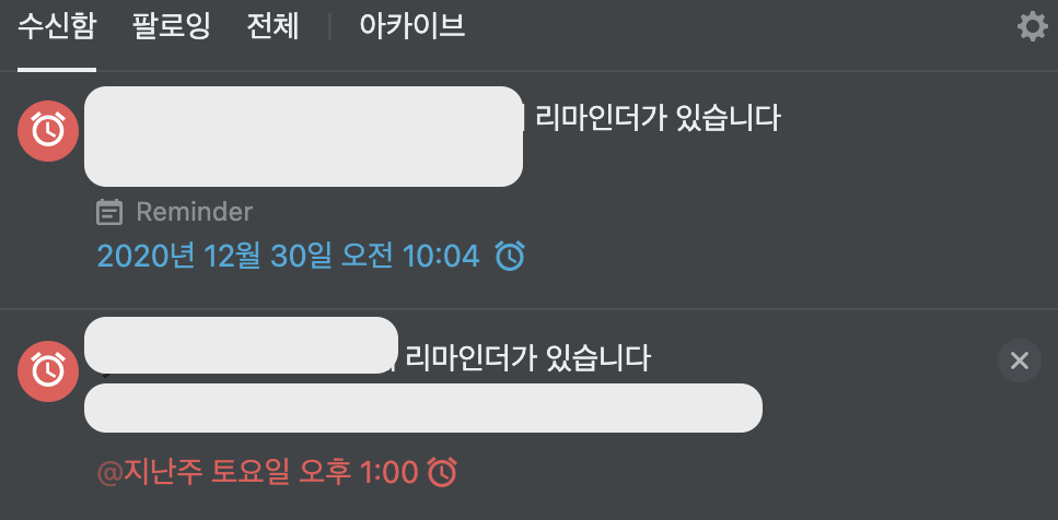 노션의 리마인더는 여기처럼 수신함으로 오게 되어있더군요.
