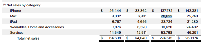 직전 회계연도에서 맥(Mac) 제품군은 전년 대비 10%이상(말이됨?)의 매출성장률을 보이고 있습니다.
