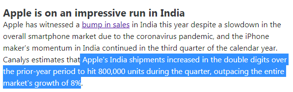 대한민국의 애플 매출액도 성장하는 추세이지만, 장기적으로 [인도]라는 무시무시한 시장이 아직 열리지 않았다고 생각합니다.