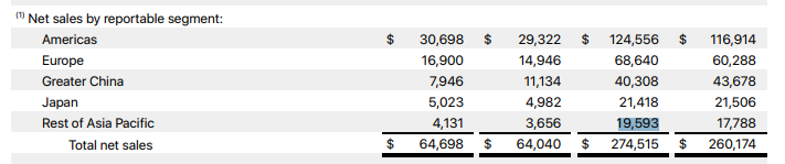 거기다 저는 애플 주식을 사서 오래 둘만하다고 생각한 게, 바로 Rest of Asia Pacific 분야의 성장입니다.